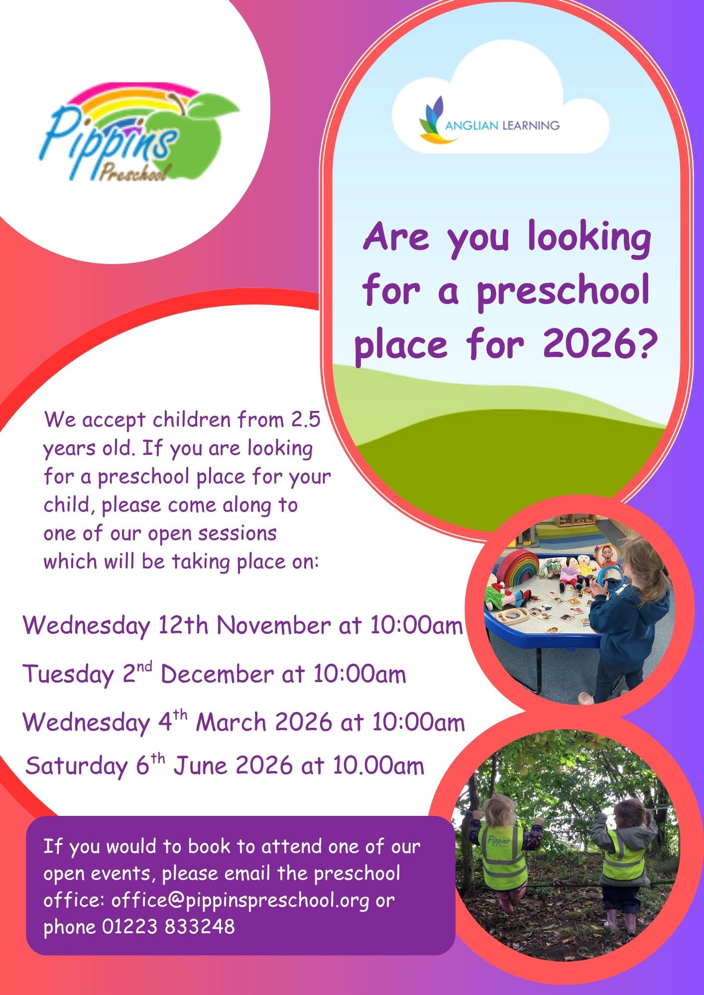 At Pippins Preschool, part of Anglian Learning, we aim to provide your child with a well-rounded, nurturing preschool experience, which will support their learning and development. We want every child who walks through our doors to feel happy, secure and cared for throughout their time with us. There’s a reason we’ve been called “a hidden treasure in Sawston” by our former parents! To learn more about what previous families have thought of their child’s experience at Pippins, visit our Testimonials page.