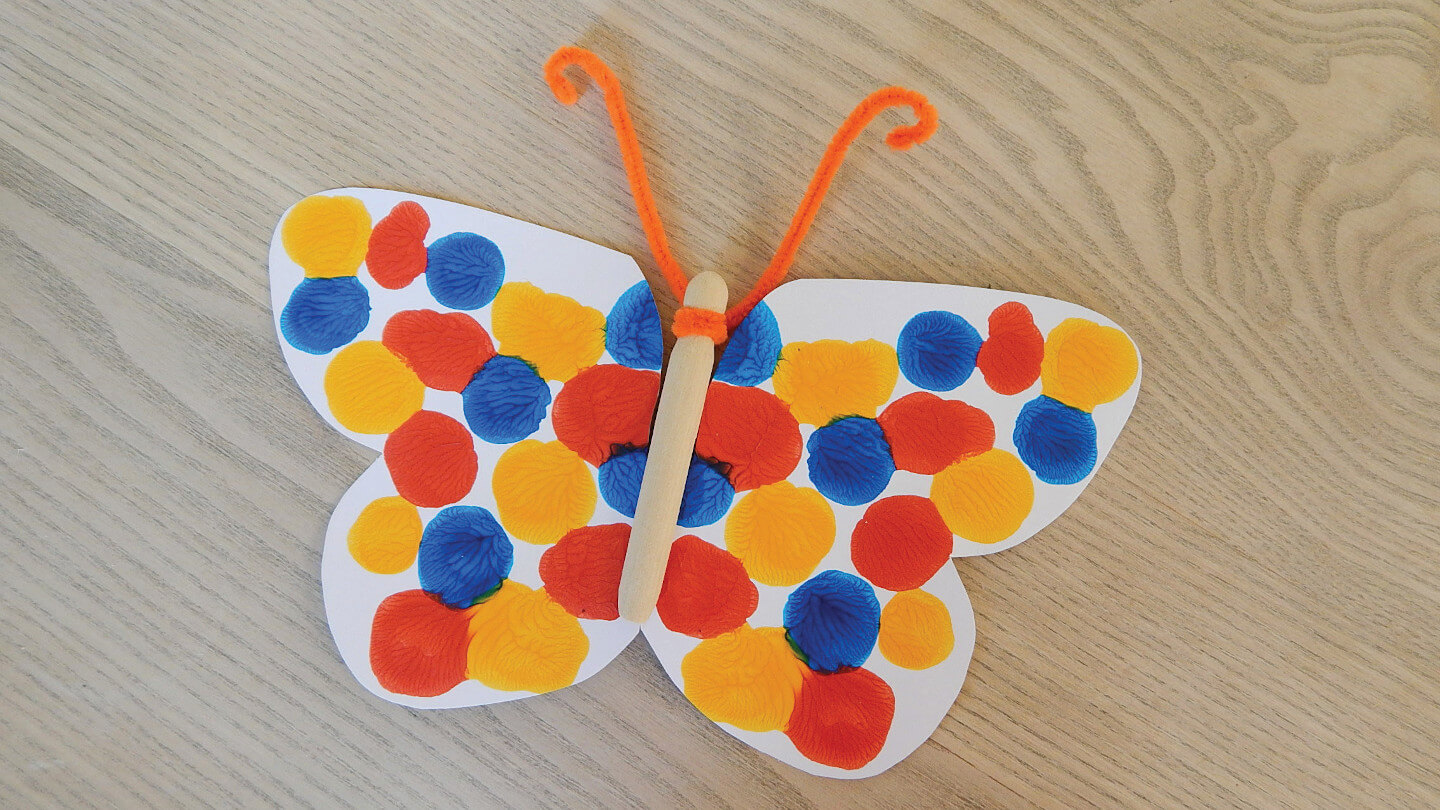 Explain to your child that a butterfly’s wings are symmetrical, meaning they are the same on both sides – just like their painted butterfly. If you have them, you can use a clothes peg or wooden craft stick to add a butterfly body, and some colourful pipe cleaners for antennae.